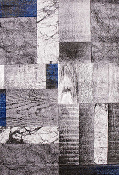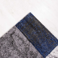 This modern designer rug in gray and blue is characterized by its versatility. The geometric shapes of varying sizes, featuring stylish designs, make this interior piece a real eye-catcher. Thanks to its heathered fibers, the rug has a naturally dynamic surface texture and creates a comfortable atmosphere. Furthermore, it is of excellent quality, antistatic, and extremely durable. This short-pile rug is also easy to care for. Construction: machine-woven / contour cut. Weight: approx. 2500 g/m². Pile height: approx. 11 mm. Pile material: 100% polypropylene frieze / STANDARD 100 (13.HTR.33637 Hohenstein HTTI)