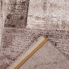 This modern designer rug in beige and brown is characterized by its versatility. The geometric shapes of varying sizes, featuring stylish designs, make this interior piece a real eye-catcher. Thanks to its heathered fibers, the rug has a naturally dynamic surface texture and creates a comfortable atmosphere. Furthermore, it is of excellent quality, antistatic, and extremely durable. This short-pile rug is also easy to care for. Construction: machine-woven / contour cut; Weight: approx. 2500 g/m²; Pile height: approx. 11 mm; Pile material: 100% polypropylene frieze / STANDARD 100 (13.HTR.33637 Hohenstein HTTI)