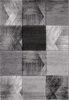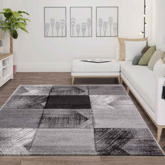 This modern designer rug in gray and white is characterized by its versatility. The geometric shapes of varying sizes, featuring stylish designs, make this interior piece a real eye-catcher. Thanks to its heathered fibers, the rug has a naturally dynamic surface texture and creates a comfortable atmosphere. Furthermore, it is of excellent quality, antistatic, and extremely durable. This short-pile rug is also easy to care for. Construction: machine-woven / contour cut; Weight: approx. 2500 g/m²; Pile height: approx. 11 mm; Pile material: 100% polypropylene frieze / STANDARD 100 (13.HTR.33637 Hohenstein HTTI)