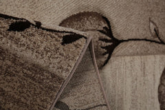 Designer living room rug in natural beige and brown with floral motif