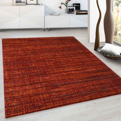 This designer rug, with its modern, multicolored, mottled, crimped velour pile, offers a natural-looking surface. Its warm color scheme harmonizes with both modern and classic interiors. The varying color arrangement of the highly durable, resilient, and colorfast fibers creates a visually appealing "used" look. The very dense pile is exceptionally plush, sure to bring a smile to the face of anyone who enjoys walking barefoot on it, feeling its pleasantly soft, velvety texture underfoot. The modern rug is finished with a robust, two-tone yarn binding on both long sides for a clean, finished look. Made from polypropylene, this rug is extremely easy to care for and perfectly suited for everyday use. STANDARD 100 by OEKO-TEX® (13.HTR.33637 Hohenstein HTTI)