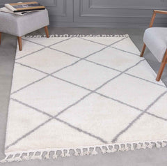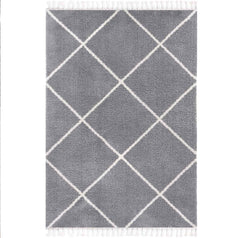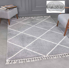 High-pile microfiber rug, super soft, for living room, in grey & cream, fluffy with fringes