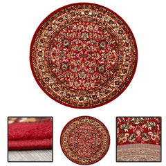 Oriental rug, red and beige, classically densely woven with ornament and floral motifs.