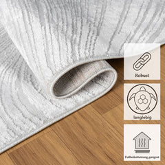 Made from high-quality polyester , microfiber , and velour , this woven, machine-woven synthetic rug is not only pleasantly soft and cuddly, but also particularly durable , robust , and easy to care for . Thanks to its non-slip backing, it offers a secure grip and stays reliably in place, even on smooth floors – ideal as a non-slip, short-pile rug for high-traffic areas.