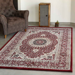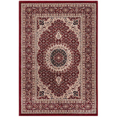 A densely woven classic rug with an oriental pattern, perfect for those who want to add an authentic touch to their living room or bedroom. The rug's 100% polypropylene fibers have been heat-set to give them structure, stability, and a beautiful sheen. The short-pile rug has a pleasantly soft surface and is easy to care for. We offer a high-quality, durable rug at an excellent price. The materials used are tested for harmful substances according to STANDARD 100 (13.HTR.33637 Hohenstein HTTI). Construction: machine-woven / hand-carved. Weight: approximately 2600 g/m². Pile height: approximately 11 mm. Pile material: 100% PP Heatset.