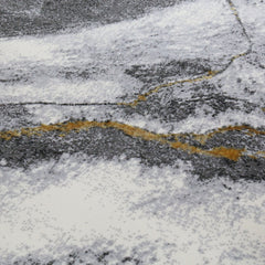 Wohnzimmer Teppich mit Marmor-Optik in Grau und Gold Tönen Glanz Modern
