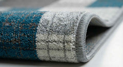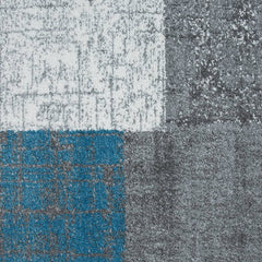 Designer Kurzflor Teppich in Türkis, Grau und Weiß mit Kachel-Optik Wohnzimmer