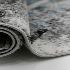 Designer Teppich Wohnzimmer Geometrisches Muster Leinwand Optik Meliert Blau Grau Anthrazit Kurzflor