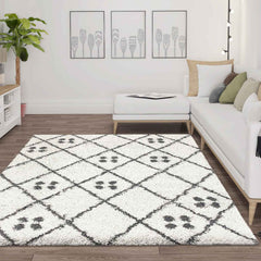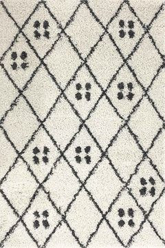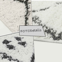 Hochflor Shaggy Teppich Rauten Muster mit Punkte Skandinavisch Creme Anthrazit