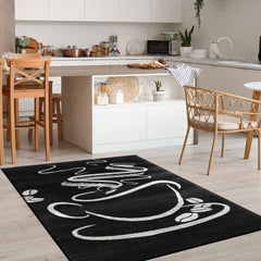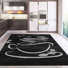 Küchenteppich Schwarz Trendiger Kaffee Teppich, Cappuccino Muster Tasse Kurzflor