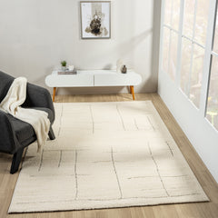 Kurzflor Teppich Skandinavisch Wohnzimmer Schlafzimmer Boho Optik Weich Streifen