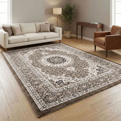 Teppich Wohnzimmer Orient Stil Ornament Bordüre Braun Beige