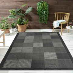 Teppiche In- und Outdoor Flachgewebe Terrasse Balkon Kacheloptik Grau Anthrazit