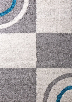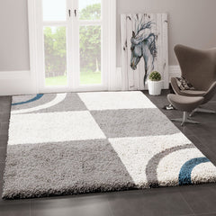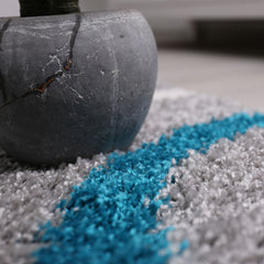 Wohnzimmer Teppich Hochflor Shaggy Deko kariert streifen Turkis Creme Grau Pflegeleicht Modern